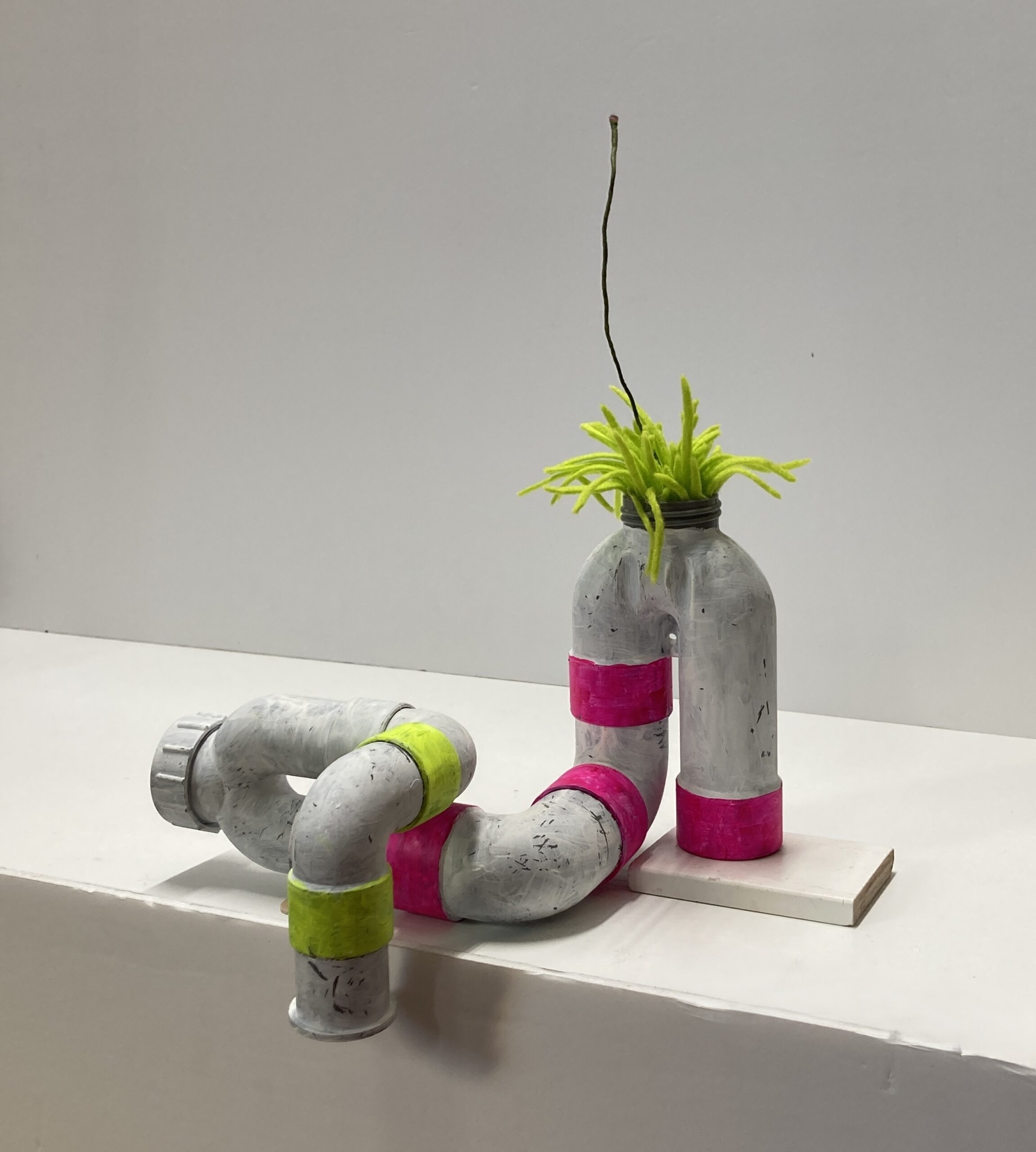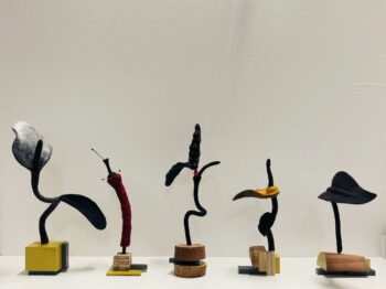 Putting the flowers outside | 2025 | felt, wood, pvc, iron | 50 x 25 x 20 cm (each approx.)